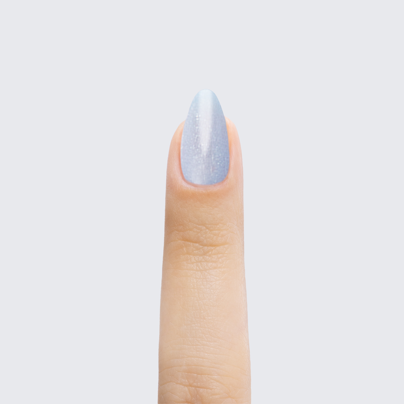 Pale periwinkle blue. Muted*. Frosted. Shimmer. Cool undertone.